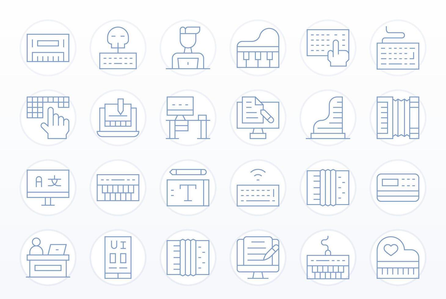 Thin Line Style Keyboard Icons with 24 High Resolution Pixel Optimized Designs vector