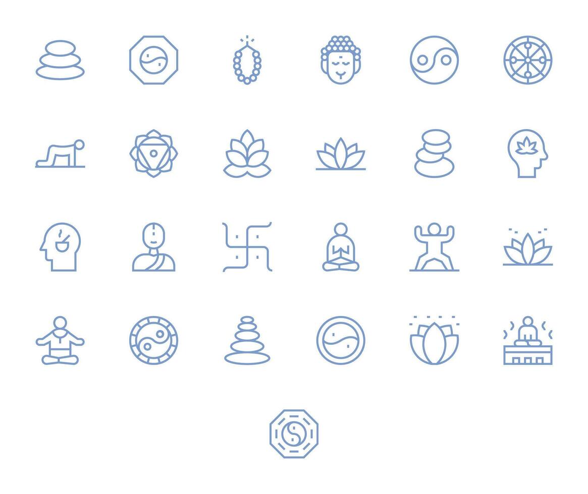 25 Pixel Aligned Icons themed around Meditation in High Resolution Regular Line format vector