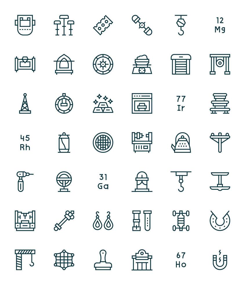 Metal Icon Library with 42 Regular Line High Resolution Pixel Optimized Designs Free Vector