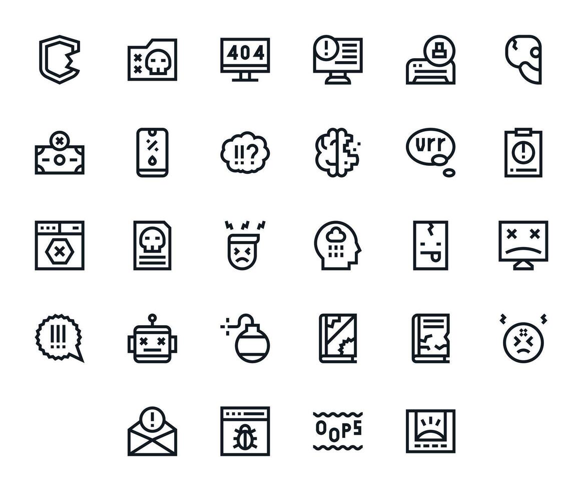 28 128x128 Icons for System Error in Pixel Optimized Bold Line Format Free Vector