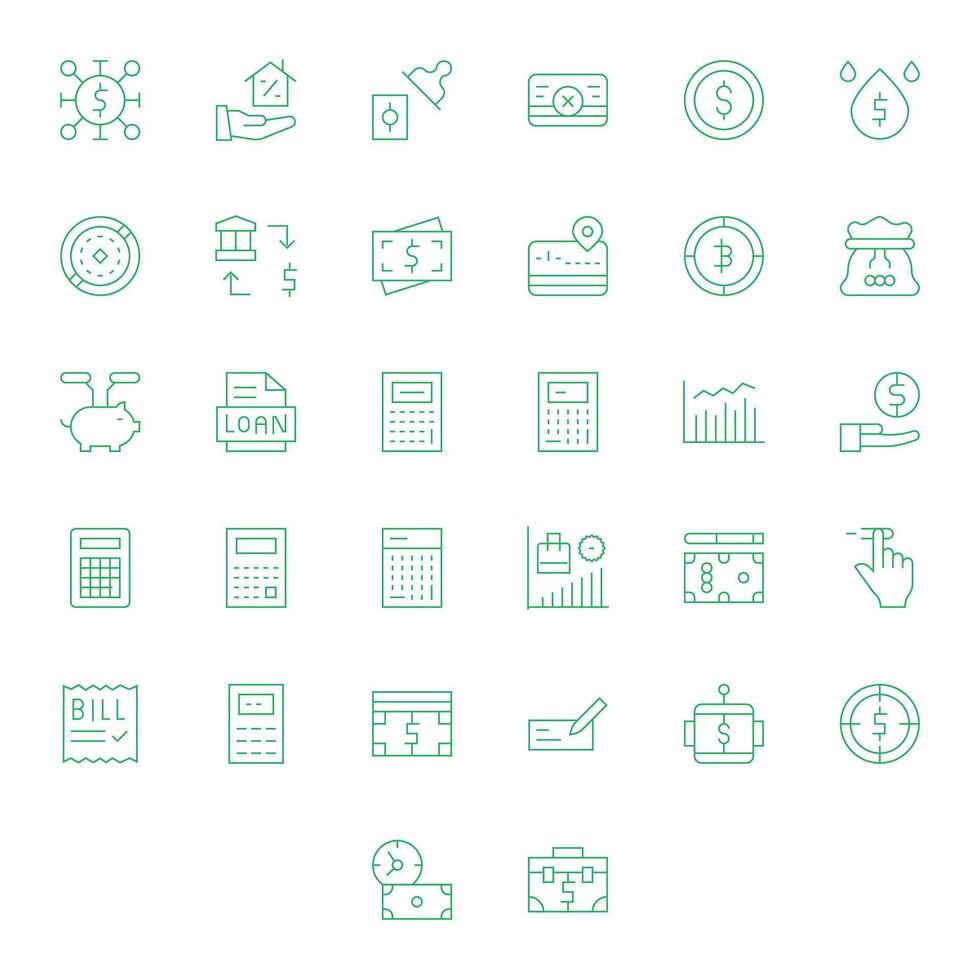 Finance Comprehensive Bundle with 32 Pixel Aligned Thin Line High Resolution Icons vector