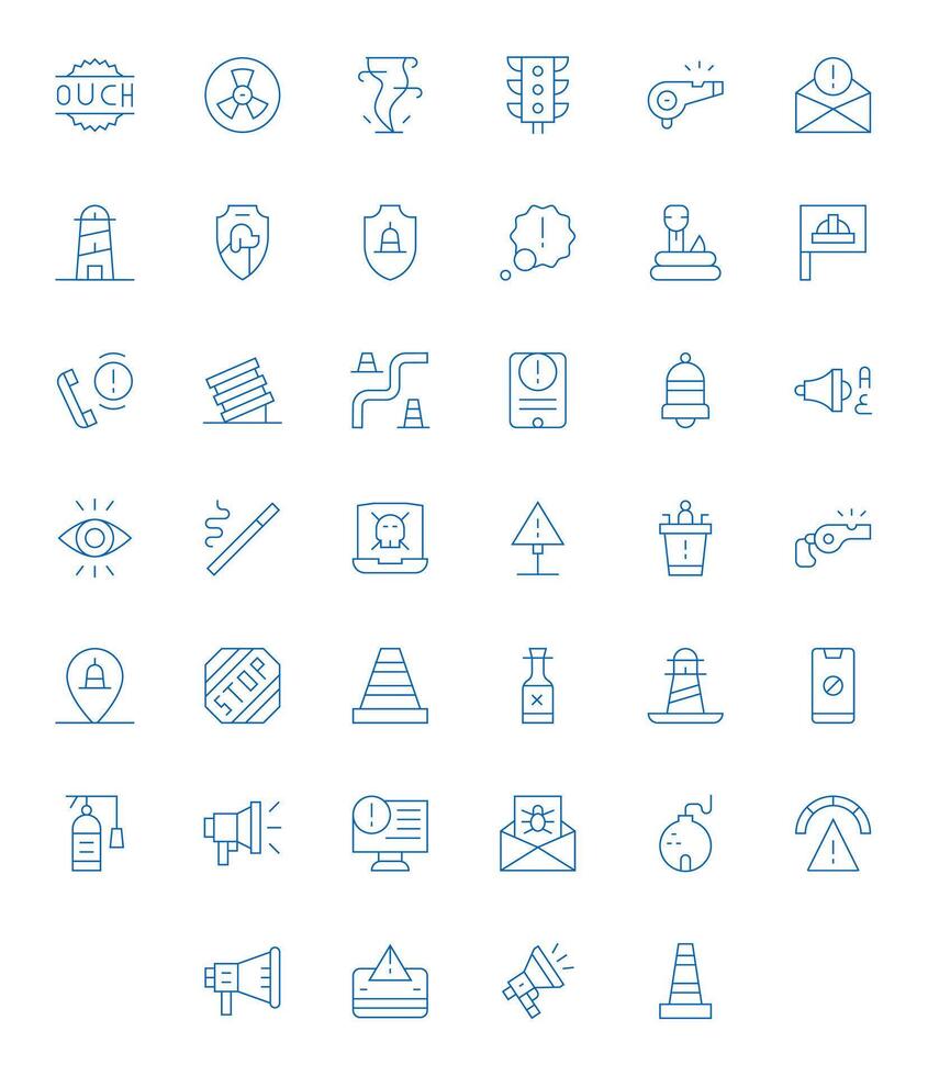 Thin Line Pixel Optimized Icons from Warning Set with 40 128x128 Icons Free Vector