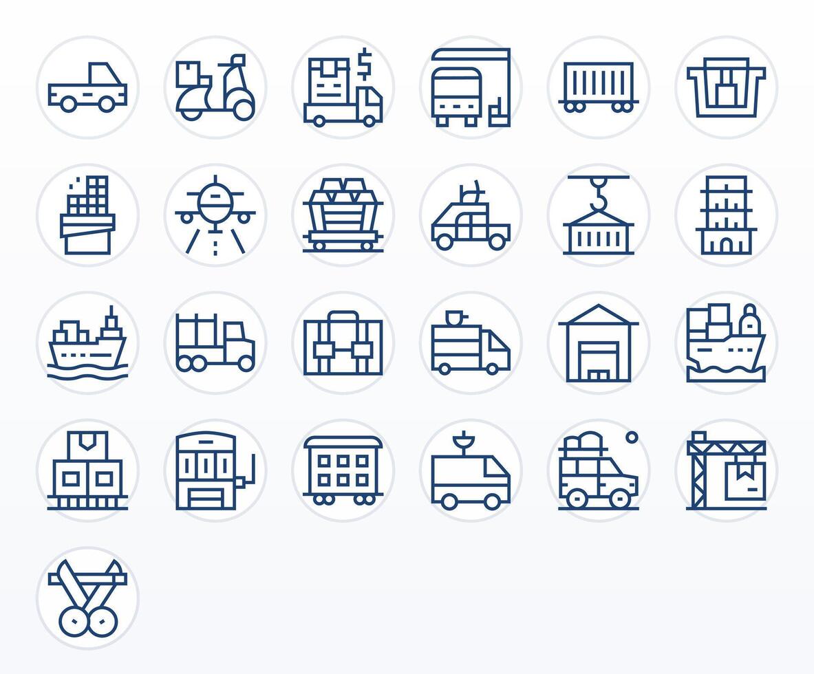 25 Icons for Freight optimized in Detail Enhanced High Resolution Regular Line resolution vector