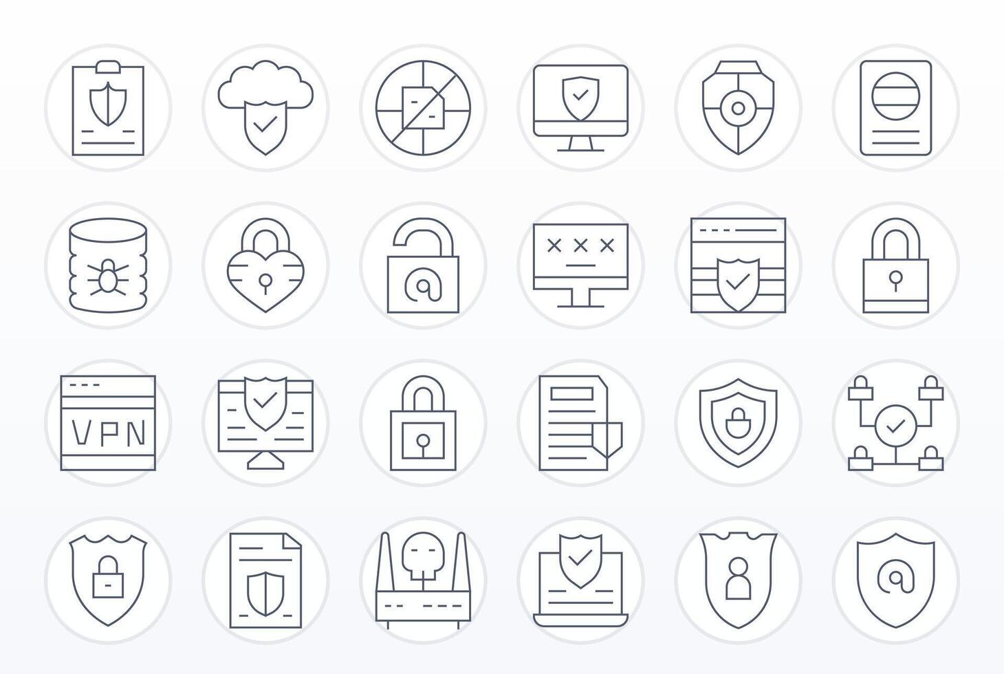 24 Grid Fitted Icons themed around Digital Security in 256x256 Thin Line format vector