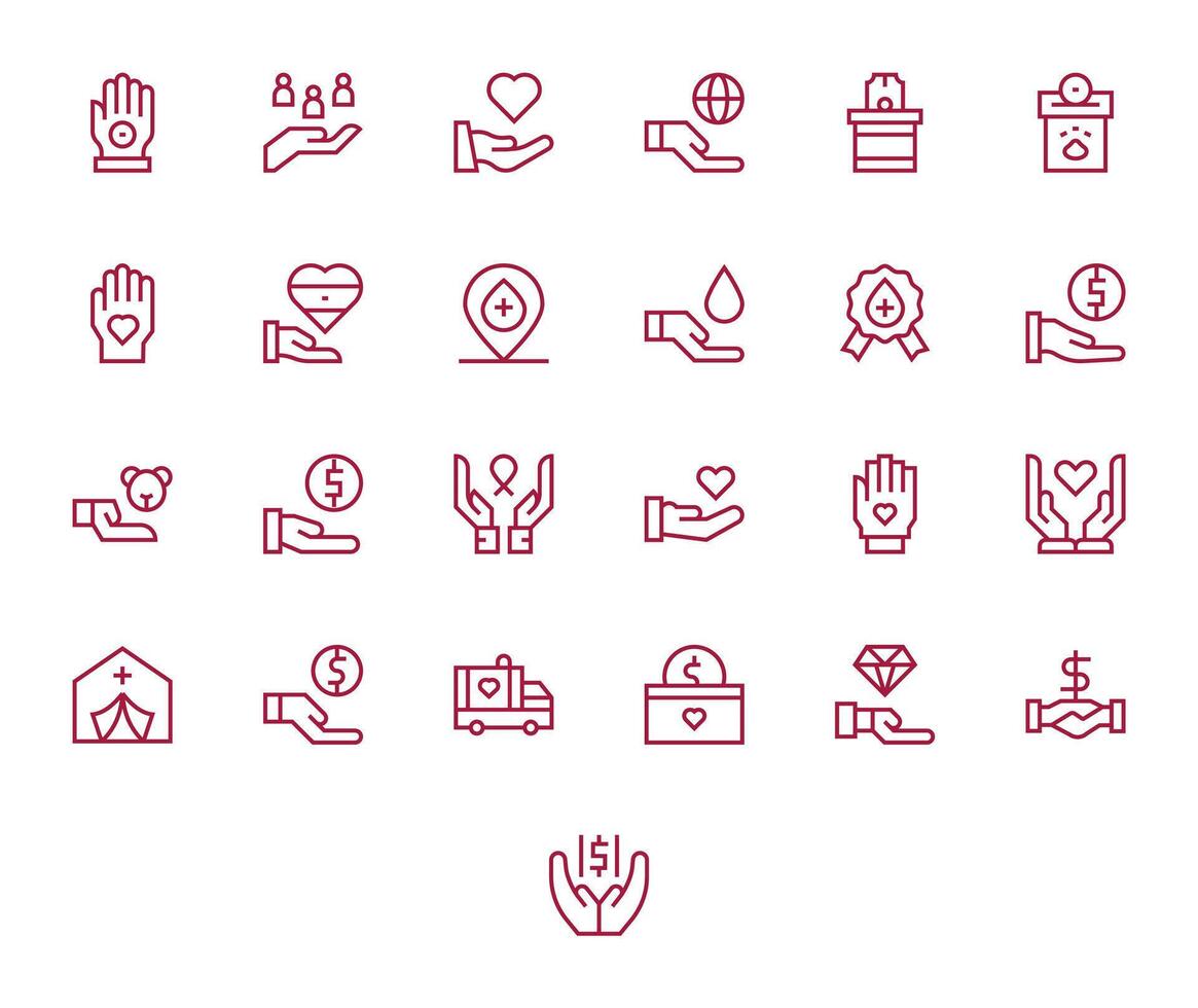 Donation Visual Pack containing 25 Regular Line Pixel Optimized Icons vector