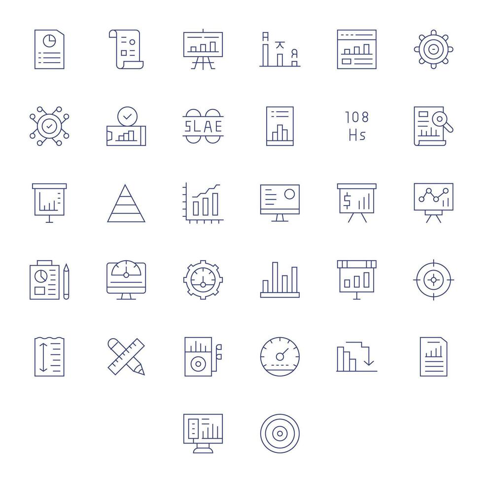32 Icons for Metrics featuring High Resolution Grid Fitted Thin Line Graphics vector