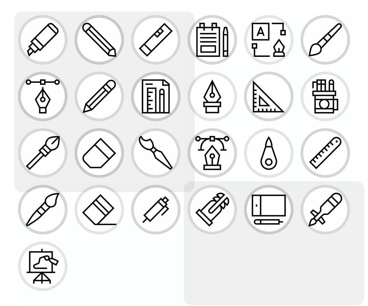 25 Icons for Drawing Tool featuring 128x128 Grid Fitted Regular Line Graphics vector