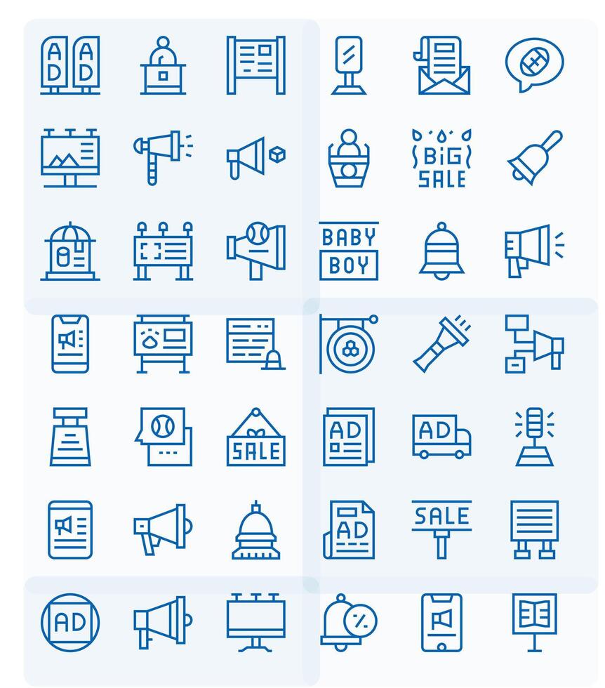 42 128x128 Regular Line Icons optimized for Announcement Display Perfect display Free Vector