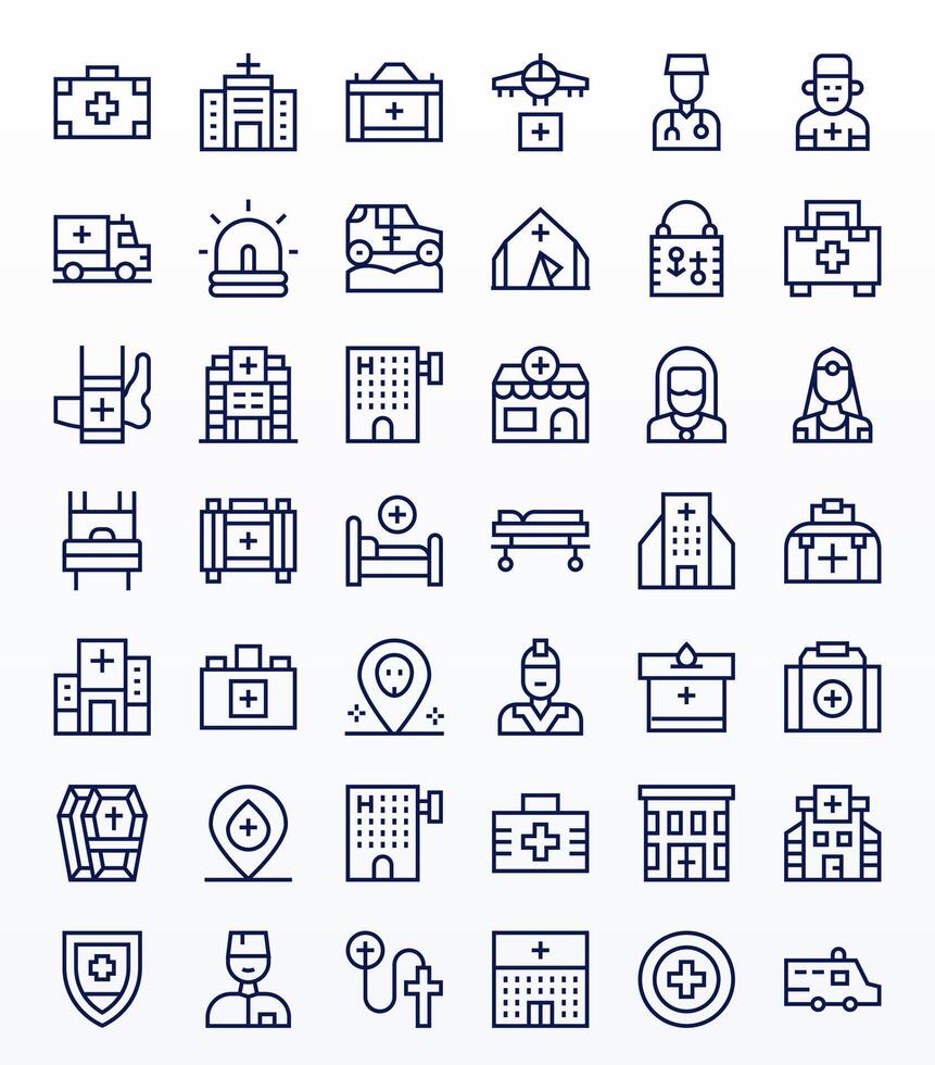 42 Pixel Aligned Regular Line Icons designed for Ambulance Interface vector