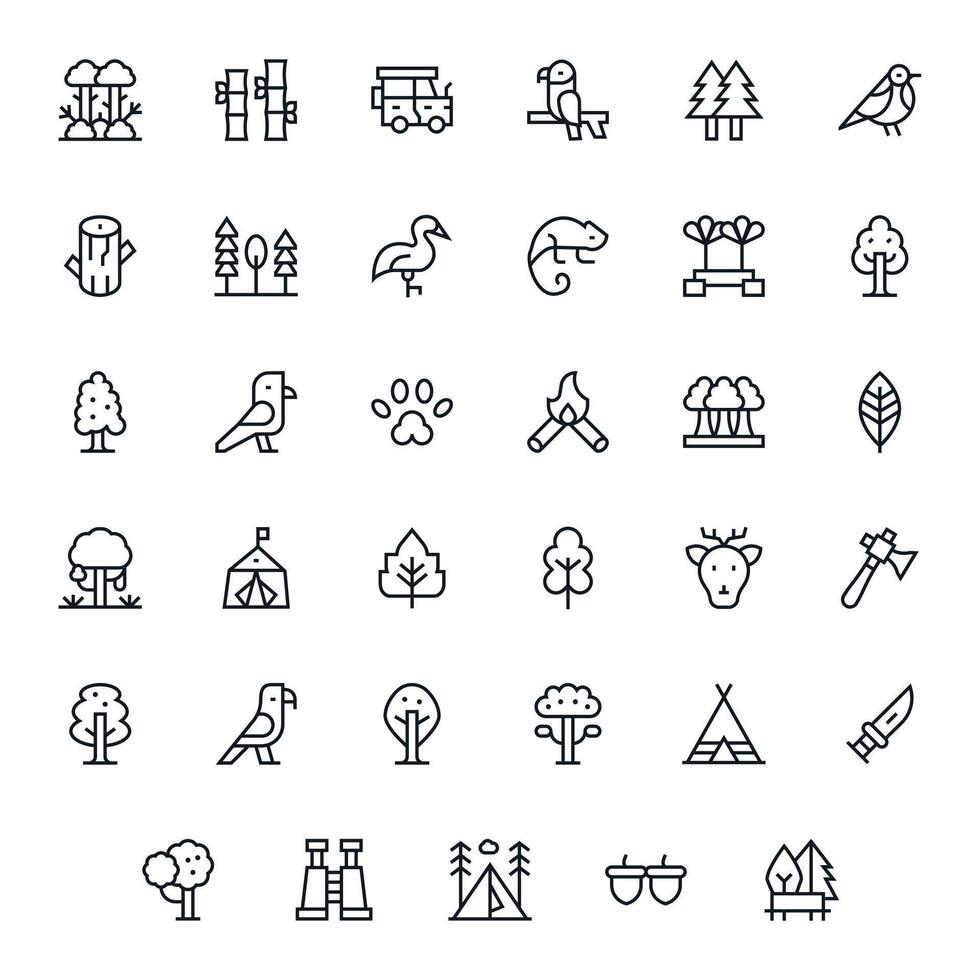 35 Regular Line PIXEL Perfect Icons tailored for Forest High Resolution interface vector