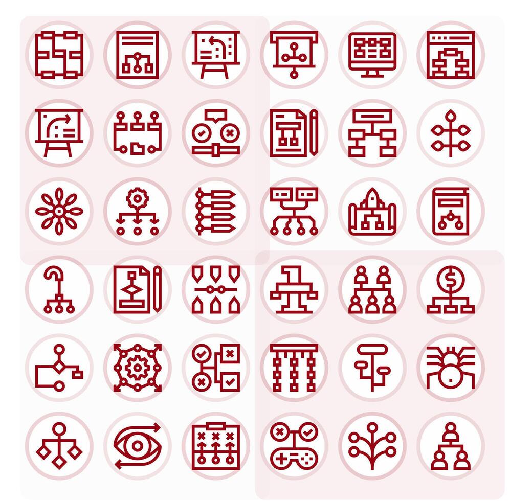 Flowchart Icon Set with 36 Bold Line 64x64 Display Perfect Graphics vector