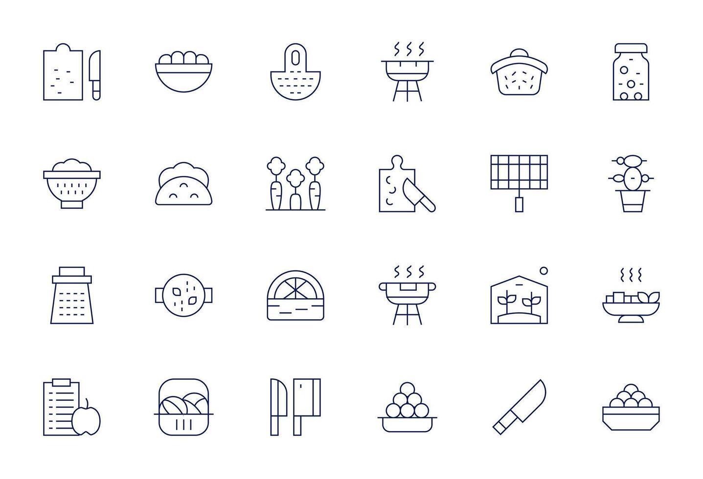 Vegetables High Resolution Icon Pack with 24 Thin Line Pixel Aligned Elements Free Vector