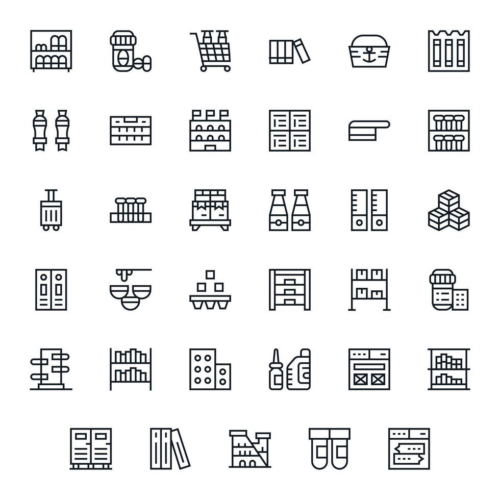 Containers Pixel Aligned Set with 35 High Resolution Regular Line Icons vector