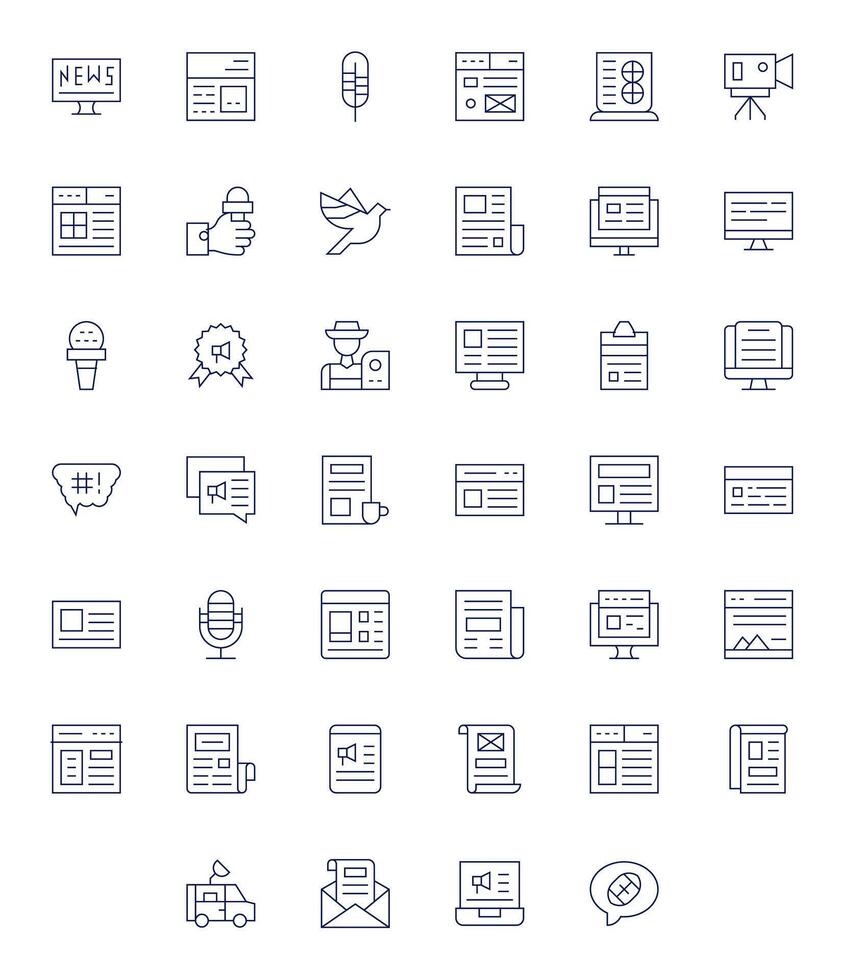 40 Icons for News optimized in Display Perfect 128x128 Thin Line resolution vector