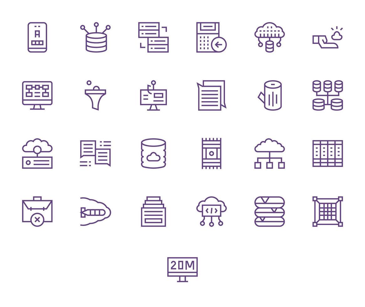 Regular Line Pixel Optimized Icons from Data Management Set with 25 Retina Ready Icons vector