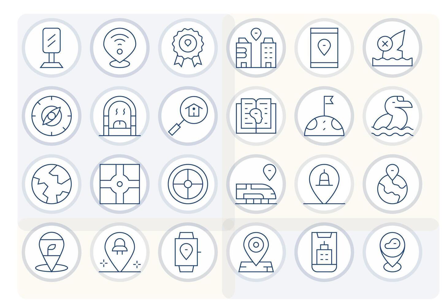 24 High Resolution Thin Line Grid Fitted Icons for Location Projects vector