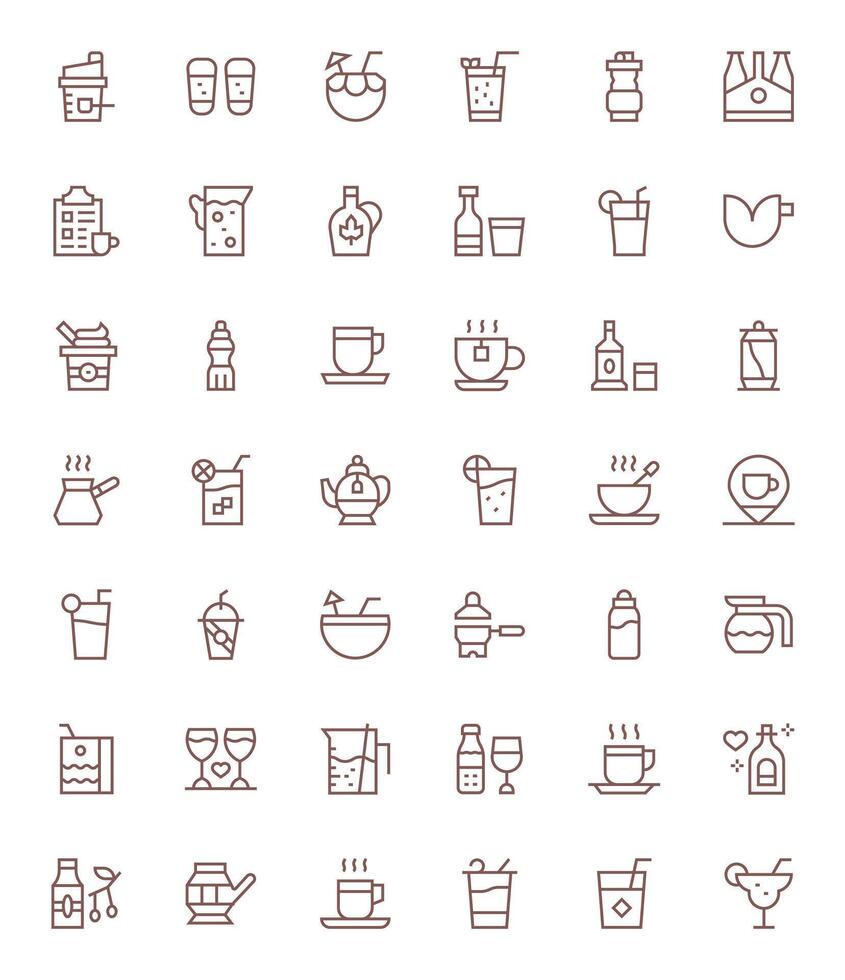 42 Regular Line Icons for Beverage in crisp 128x128 Pixel Optimized resolution Free Vector
