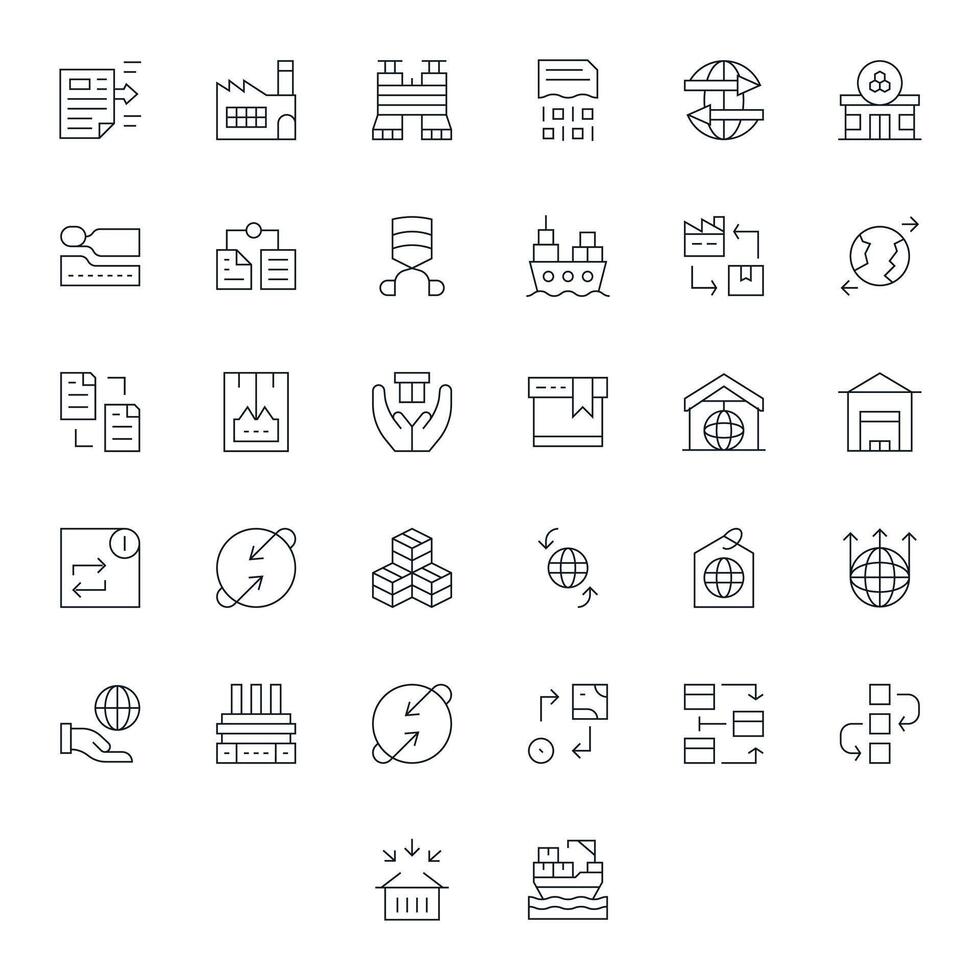 32 Grid Fitted Thin Line Icons designed for Export Interface Free Vector