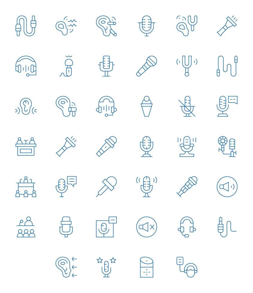 Microphone Comprehensive Bundle with 40 Grid Fitted Thin Line 64x64 Icons Free Vector