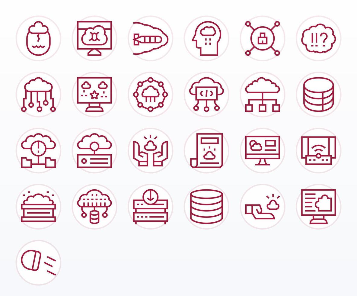Cloud Computing Icon Set with 25 Regular Line 256x256 Display Perfect Graphics vector