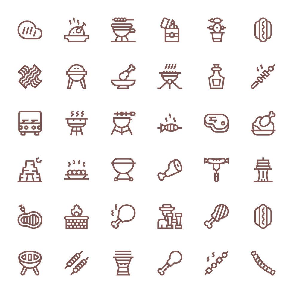 36 Icons for Bbq optimized in Pixel Optimized 128x128 Bold Line resolution vector