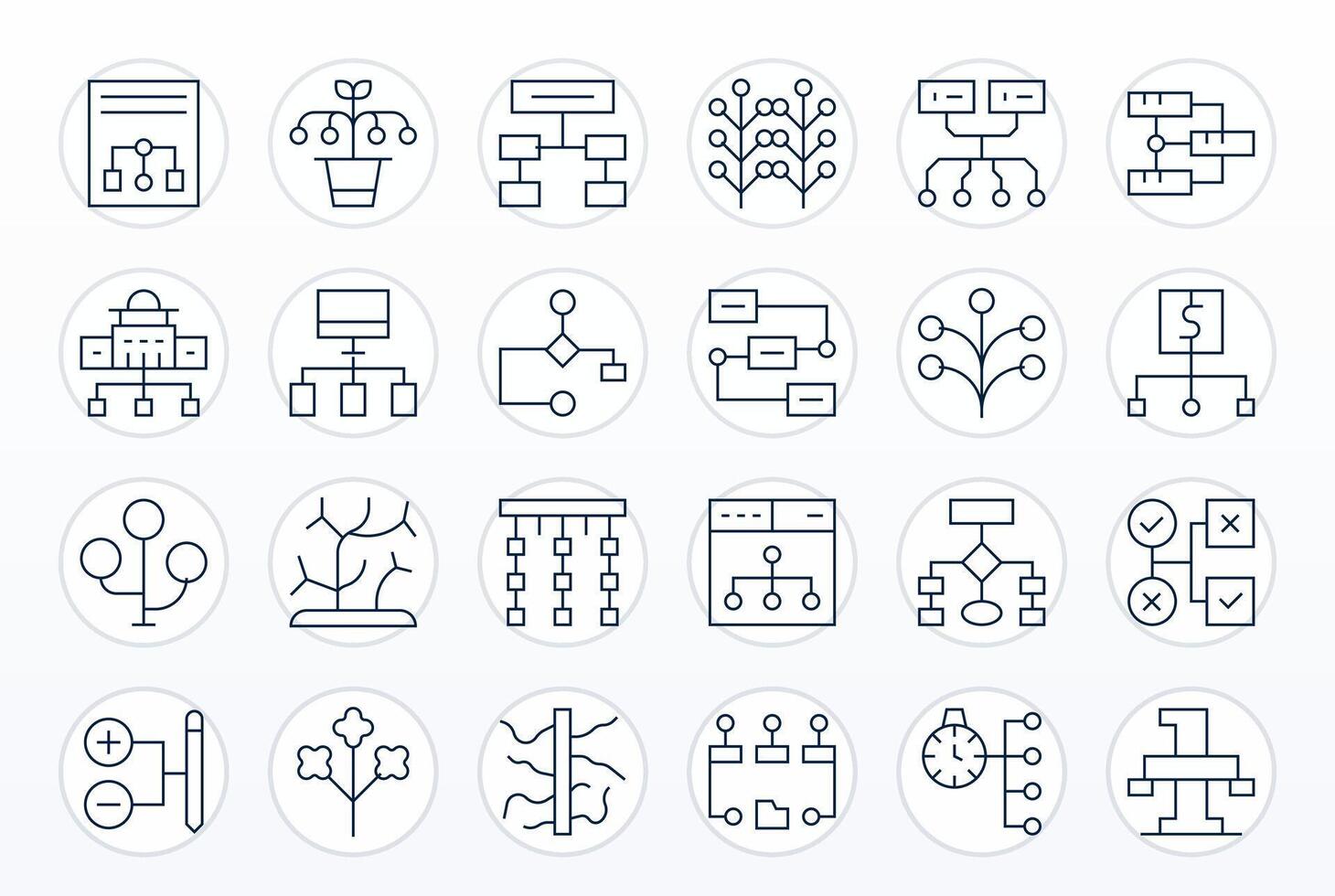 Branching Icon Collection featuring 24 Pixel Optimized High Resolution Thin Line Designs vector