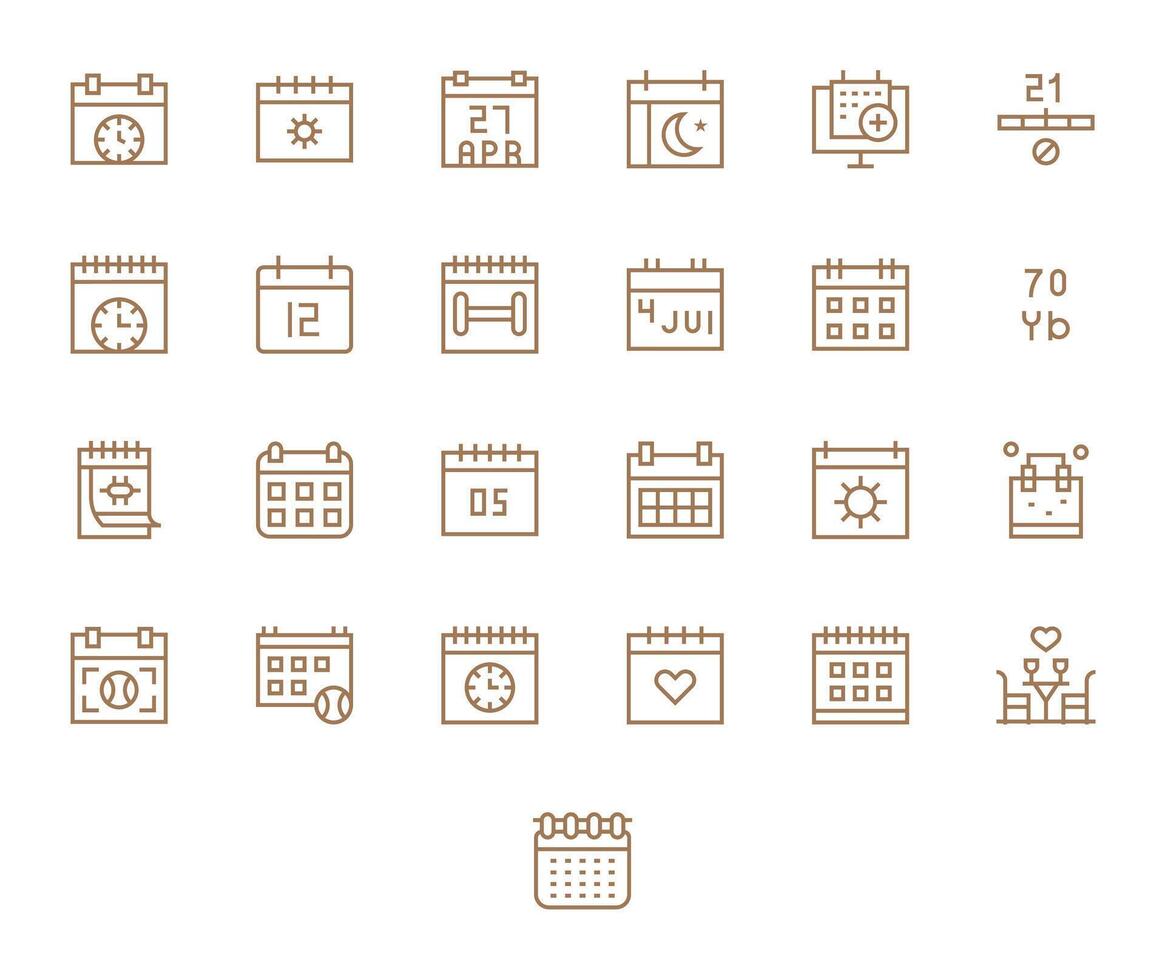 25 Regular Line Icons from Date in 128x128 Pixel Optimized Quality Free Vector
