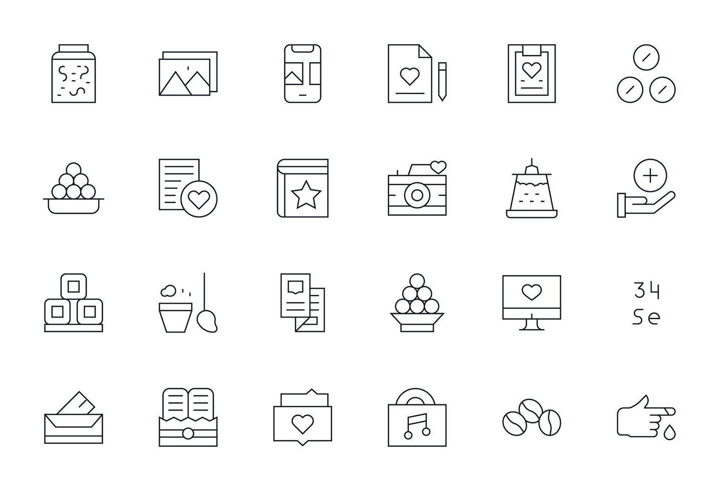 24 Thin Line Pixel Optimized High Resolution Icons from Collection Suite Free Vector