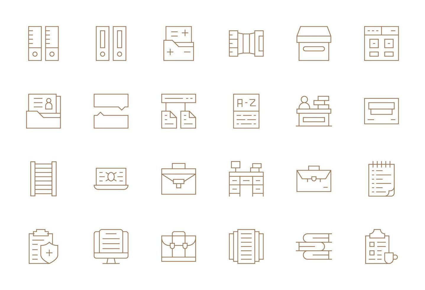 24 High Resolution Icons for Documents in Pixel Optimized Thin Line Format vector
