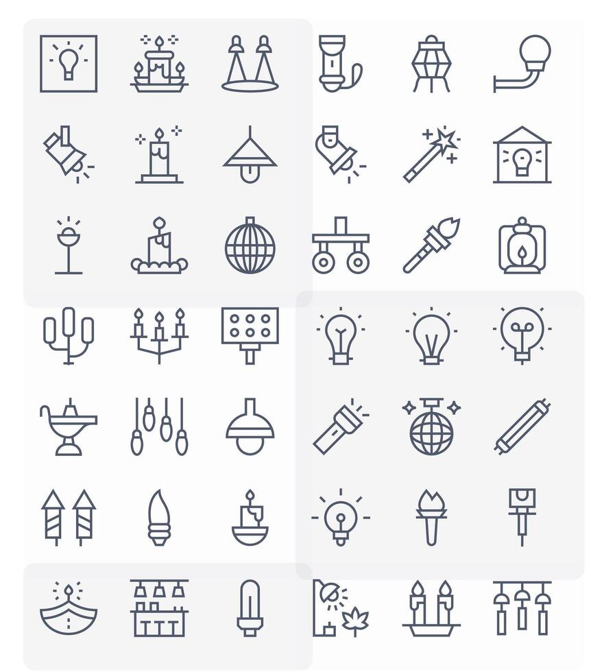 Illumination Ultimate Package with 42 High Resolution Regular Line Pixel Aligned Icons vector