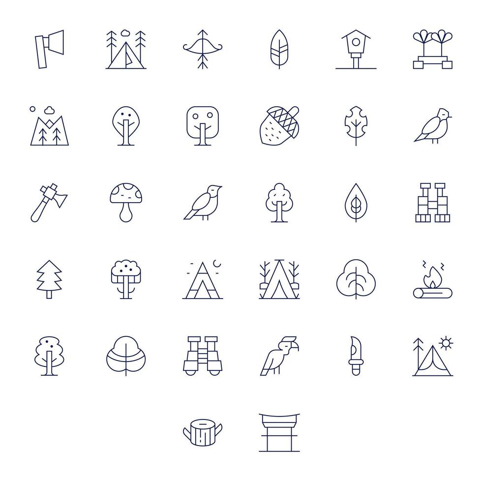 Forest Scalable Set featuring 32 Pixel Optimized Thin Line 256x256 Icons Free Vector