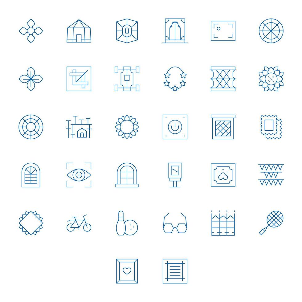 32 64x64 Thin Line Pixel Aligned Icons for Frame Projects vector