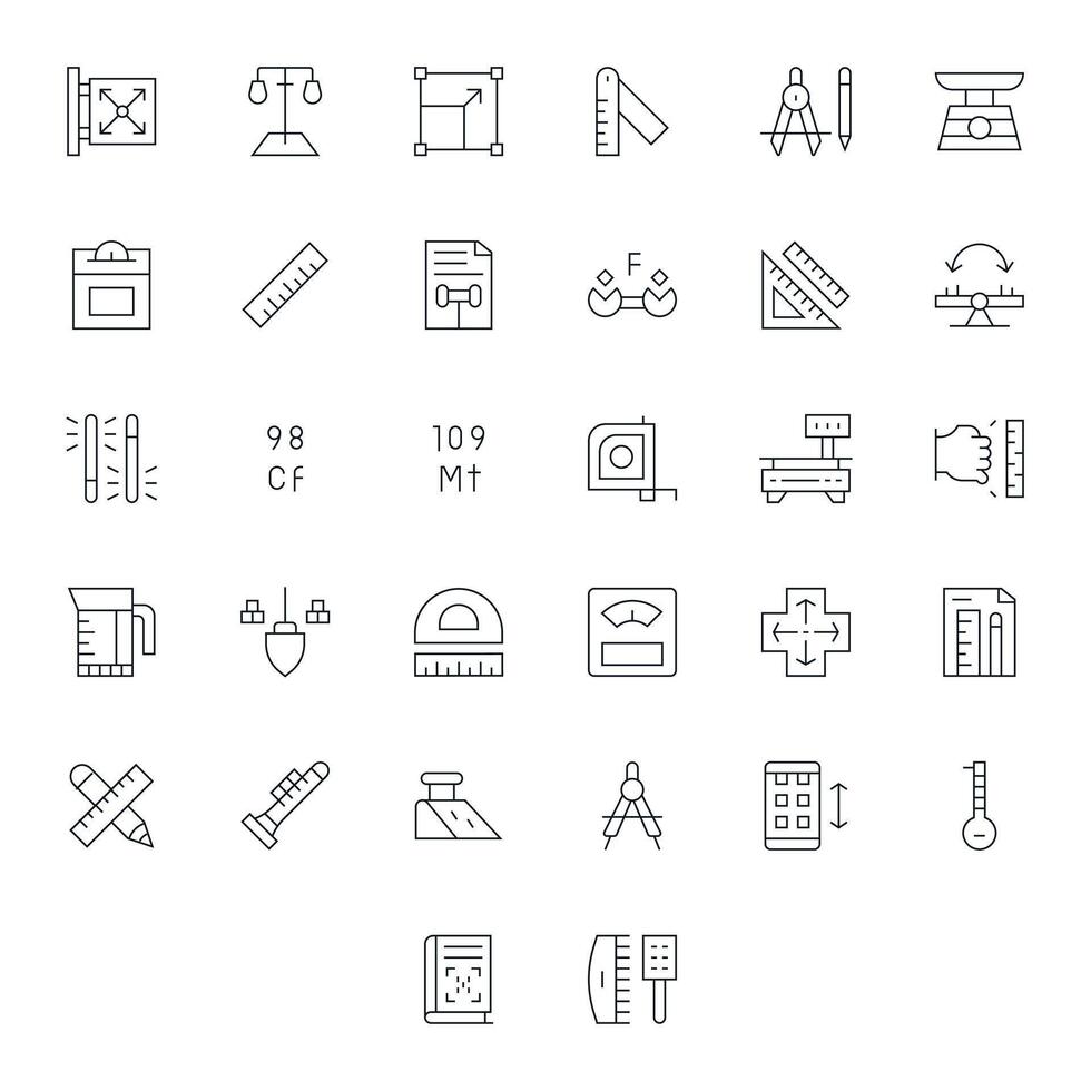 32 Thin Line Pixel Optimized Vectors for Scale Theme