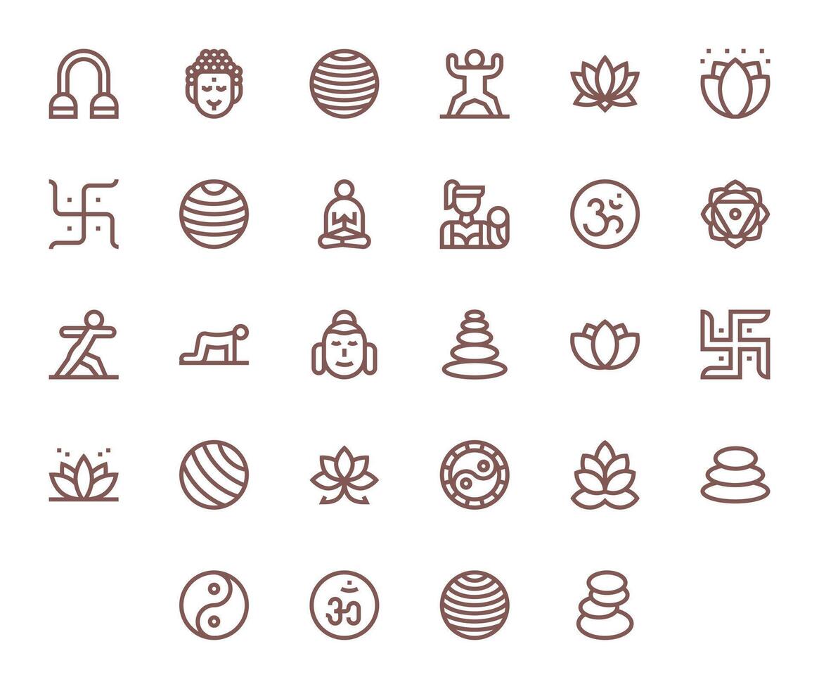 Yoga Icon Set with 28 Bold Line High Resolution Pixel Optimized Graphics vector
