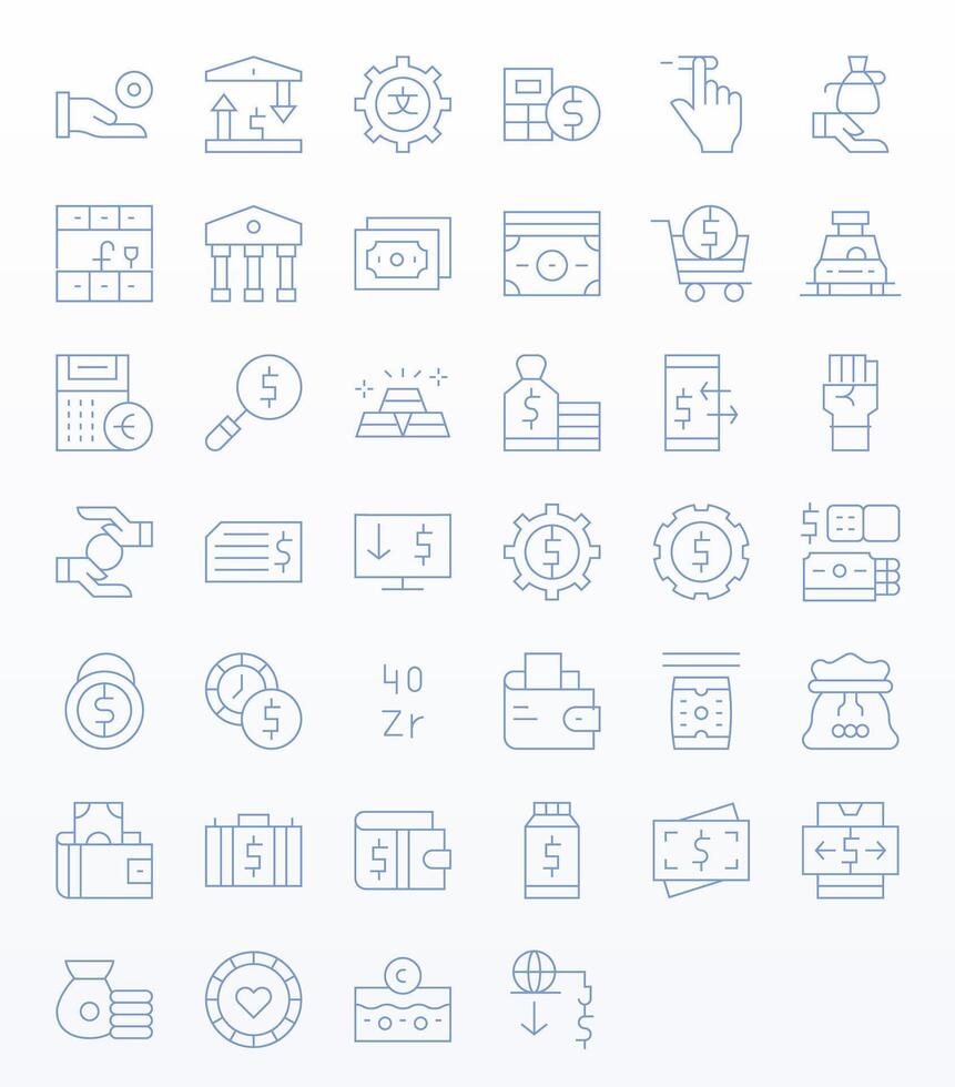 40 Thin Line Pixel Optimized Icons crafted for Currency High Resolution applications vector