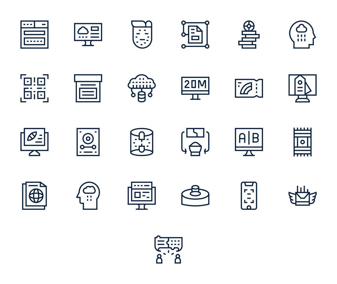 Information Technology Comprehensive Bundle with 25 Pixel Optimized Regular Line 128x128 Icons vector