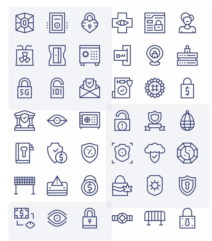 42 Pixel Aligned Icons themed around Protected in High Resolution Regular Line format Free Vector