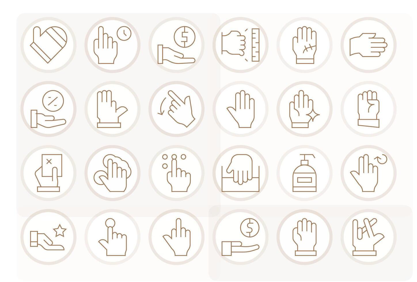24 Thin Line Icons for Hand in crisp High Resolution Pixel Aligned resolution vector