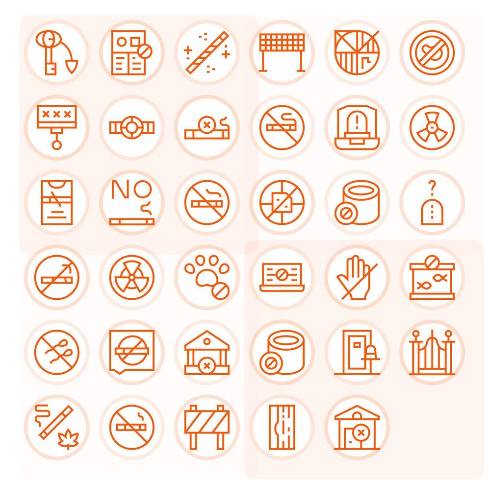 35 Regular Line Pixel Aligned Icons for Restricted Area Graphics Free Vector