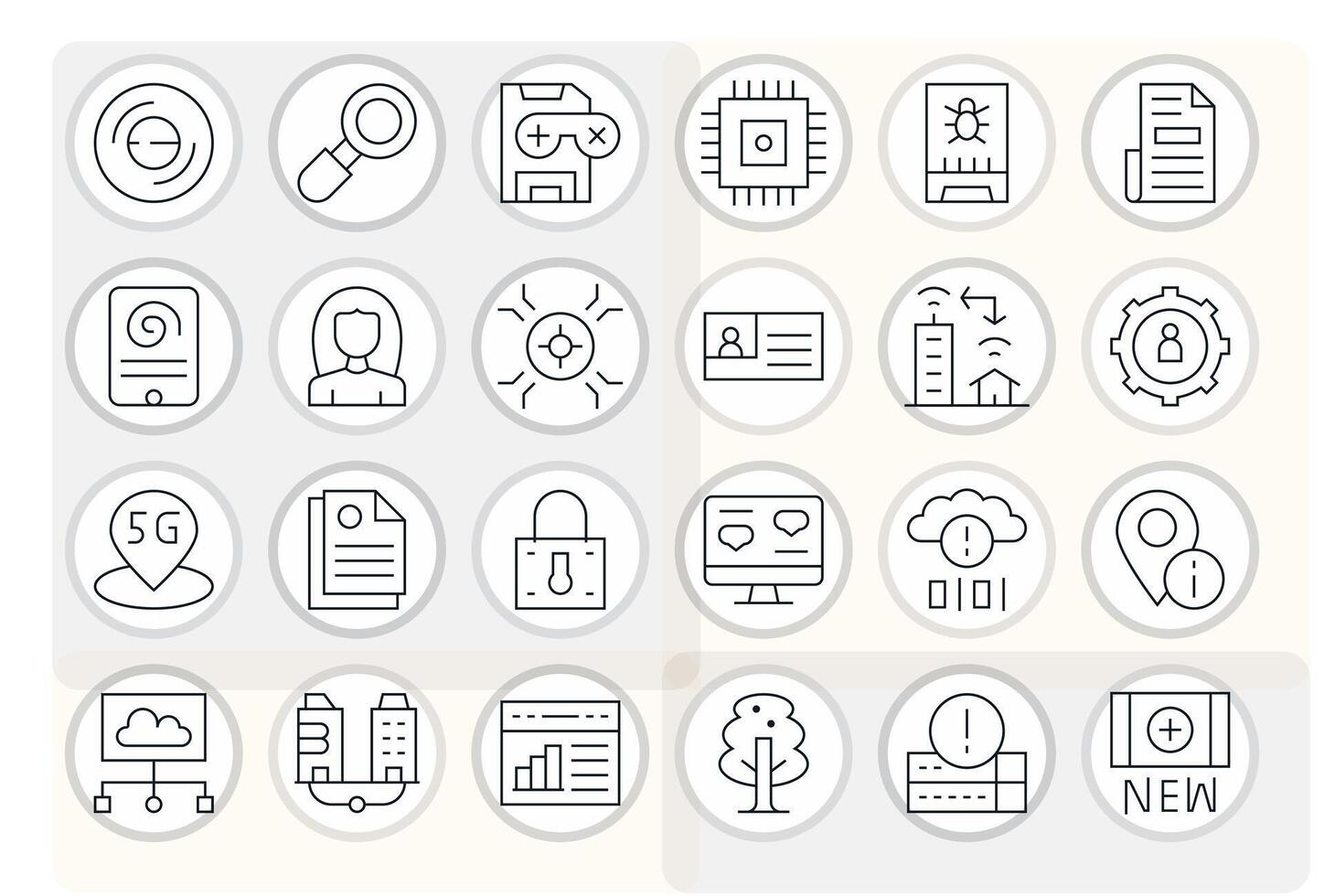 24 Thin Line Grid Fitted Icons for Data Graphics Free Vector