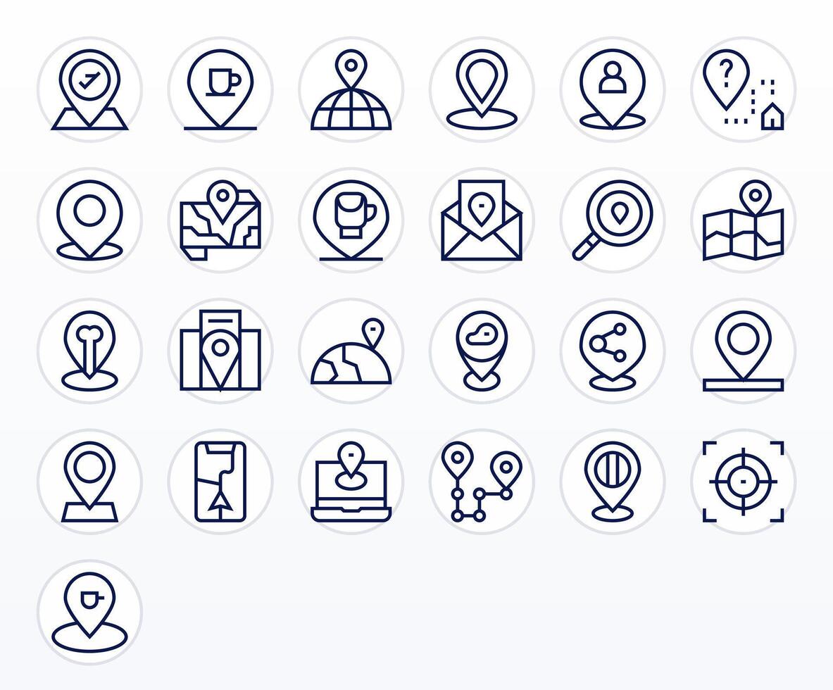 Geolocation Icon Set with 25 Regular Line 128x128 Pixel Optimized Graphics vector