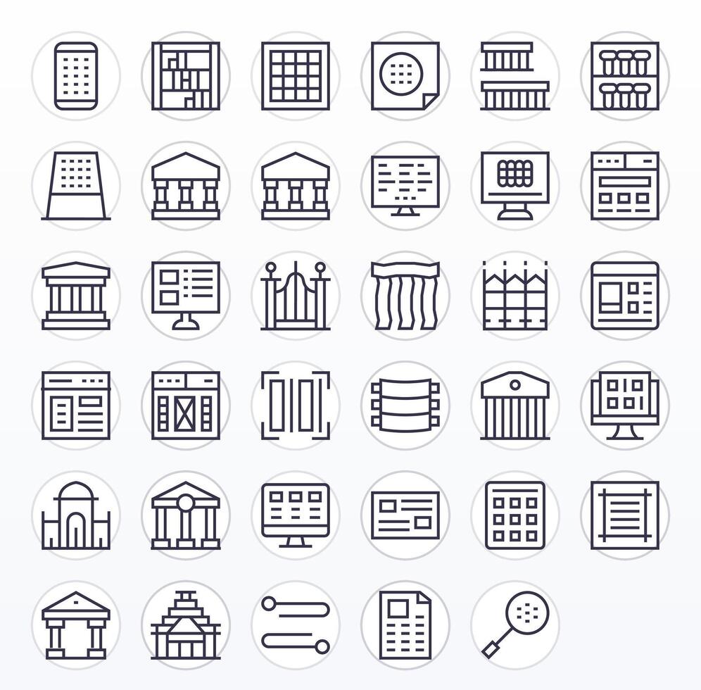35 Pixel Aligned Regular Line Icons designed for Columns Interface vector