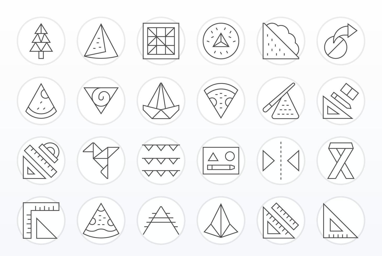 24 64x64 Pixel Optimized Icons for Triangle in Thin Line Theme vector