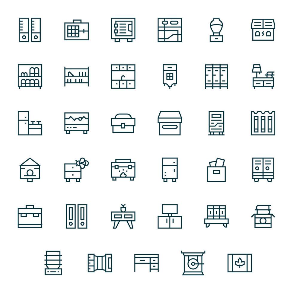 35 Regular Line Icons designed for Cabinet in High Resolution Grid Fitted format vector