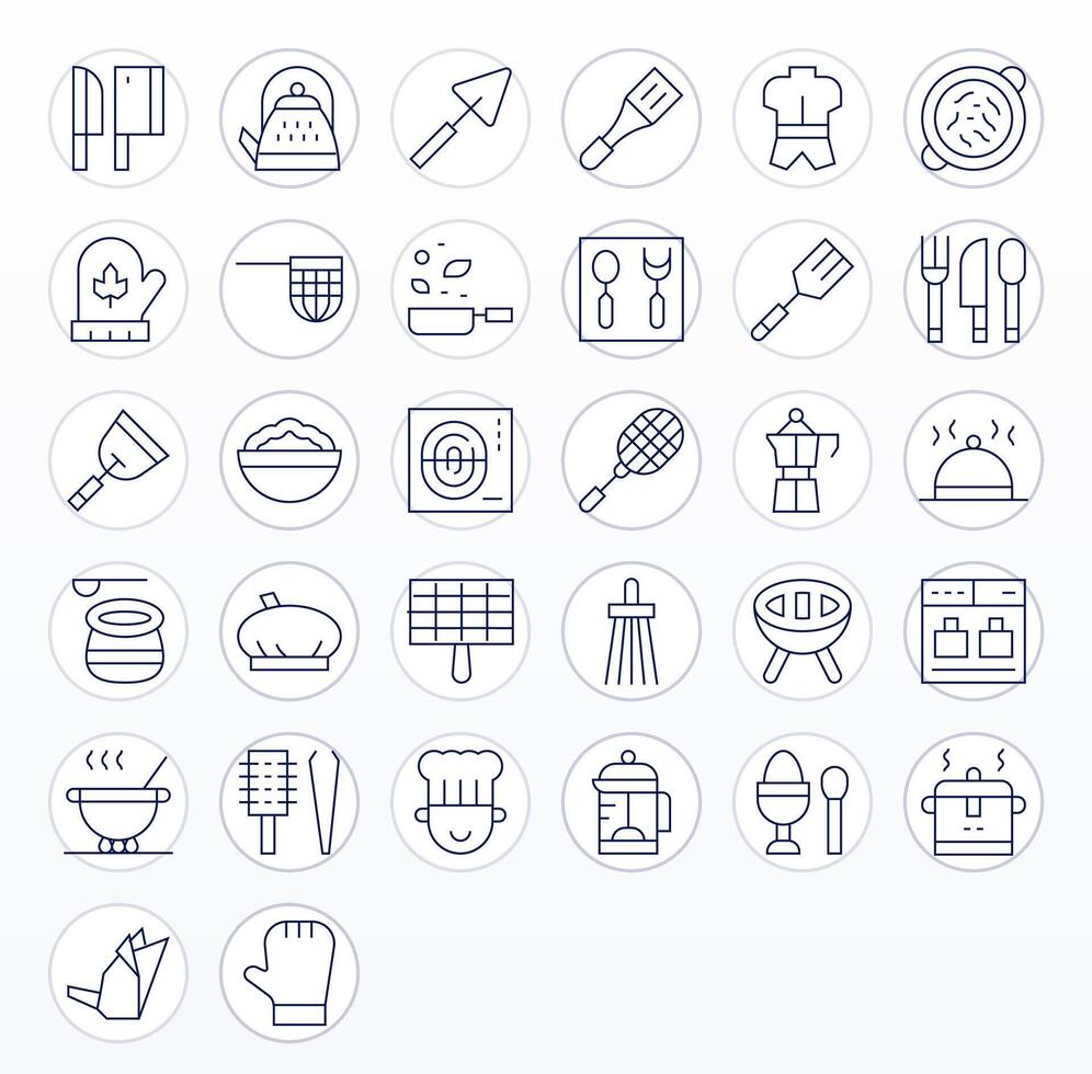 32 Thin Line Icons for Cookware in crisp Retina Ready Pixel Aligned resolution vector