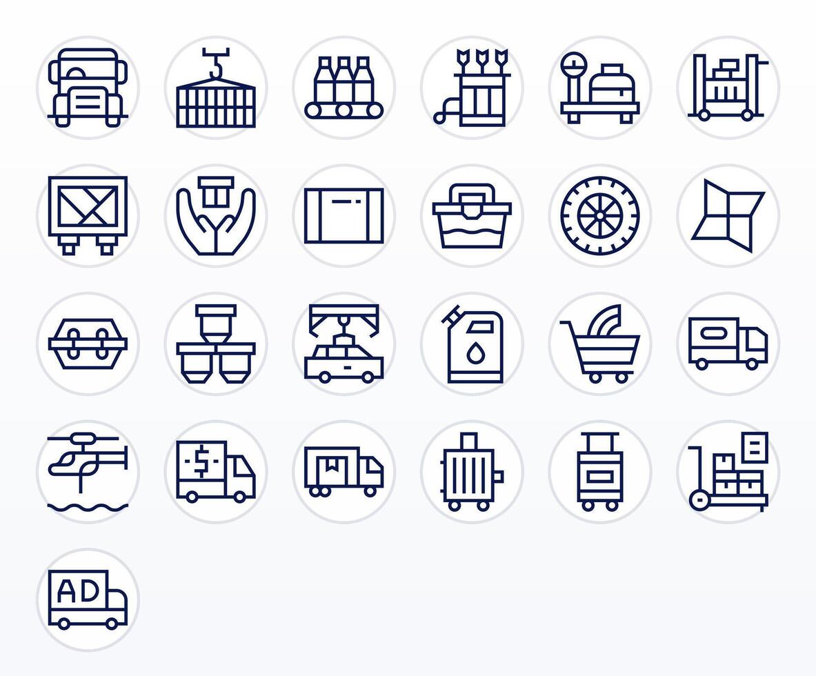 Regular Line Style Transporting Icons with 25 High Resolution Pixel Optimized Designs vector