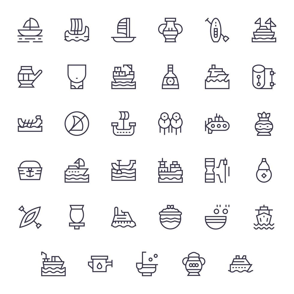 Vessel Icon Toolkit featuring 35 Pixel Optimized 128x128 Regular Line elements vector