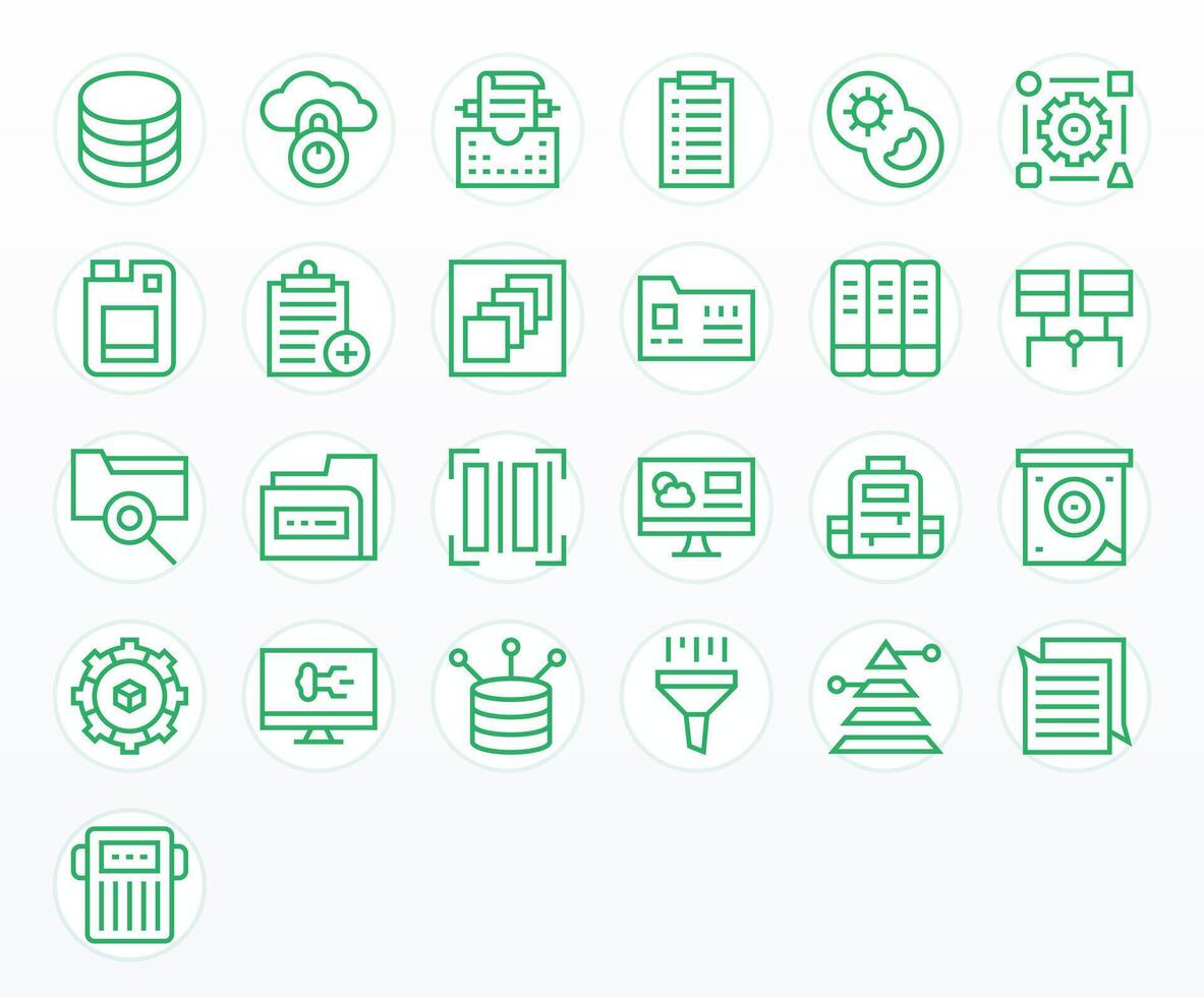 25 Regular Line Icons from Data Management in 128x128 Grid Fitted Quality vector