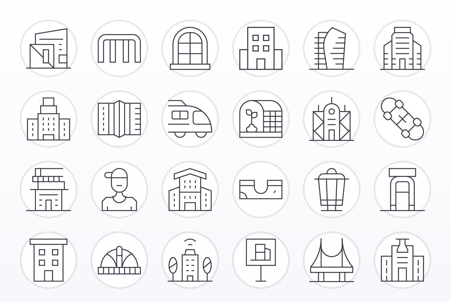 24 Editable Icons themed around Urban in High Resolution Thin Line format Free Vector