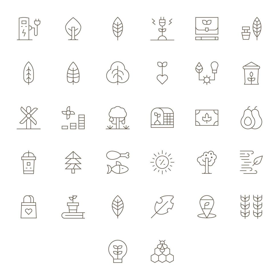 Sustainable Icon Toolkit featuring 32 Pixel Aligned High Resolution Thin Line elements vector